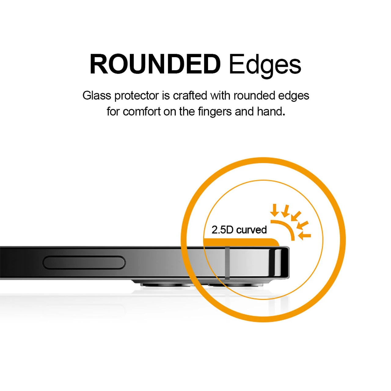 2.5D rounded edge glass for comfort on the fingers and hand