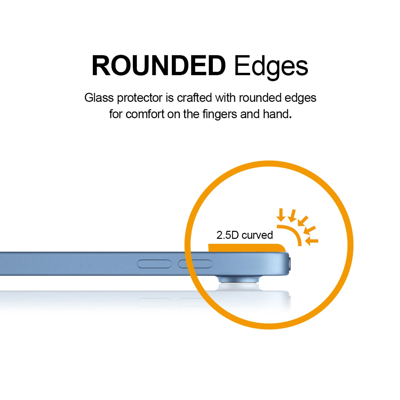 2.5D rounded edge glass for comfort on the fingers and hand