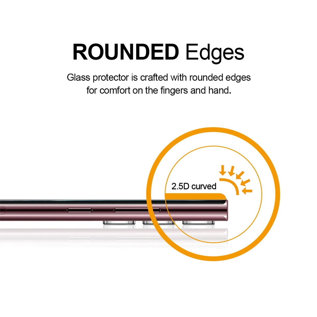 2.5D rounded edge glass for comfort on the fingers and hand