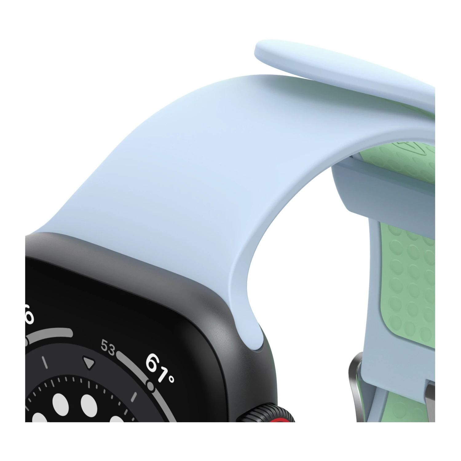 The OtterBox Watch Band is made of a durable, soft touch, silicone material, the Apple Watch wrist band is comfortable, sweatproof and breathable for daily activity and even an intense gym workout. Intentional design complements your Apple Watch with the all-day comfort and style.