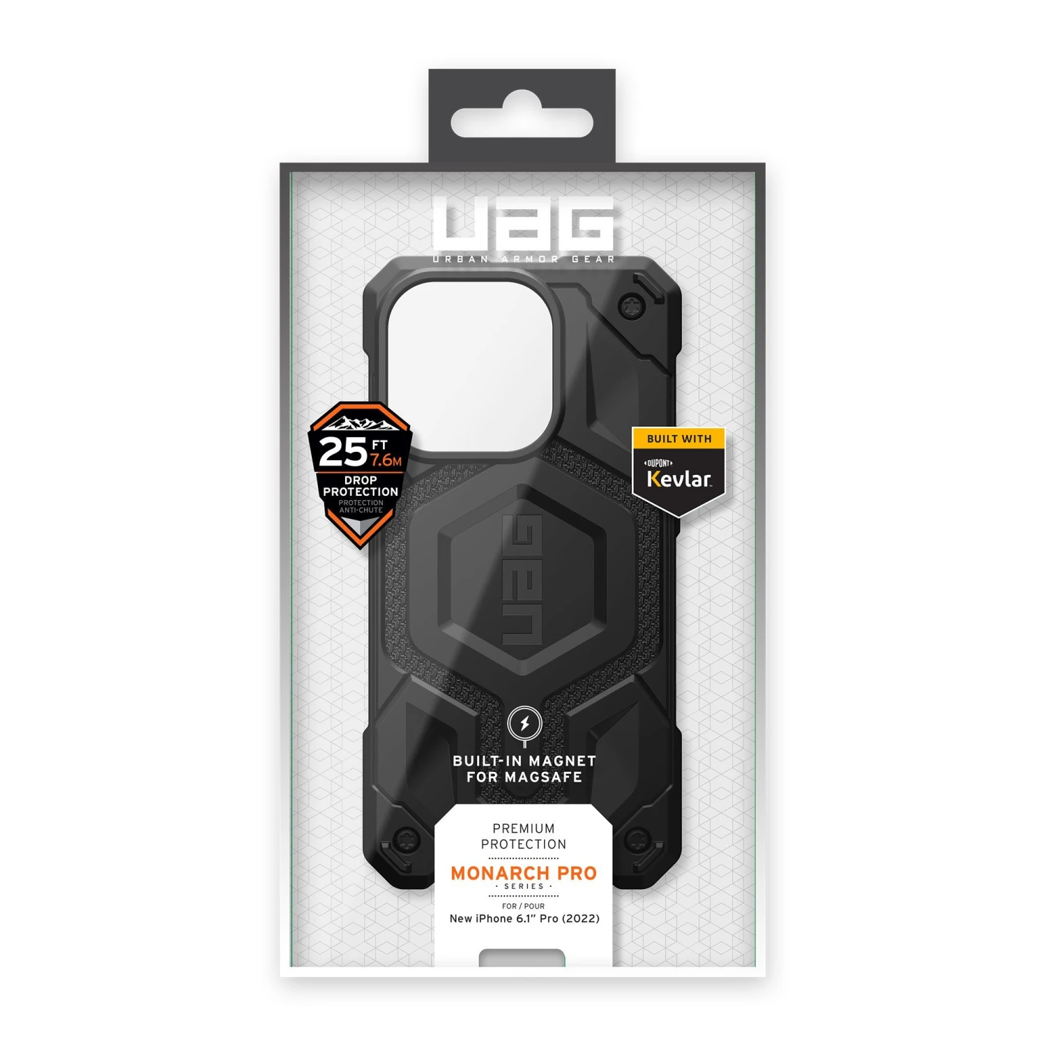 UAG Monarch Pro series has 5-layers of protection: a shock-resistant core, an unmistakable signature armor frame layered with premium materials, a polycarbonate shear plate, alloy metal hardware, and impact-resistant rubber surround. Seamless MagSafe charging compatibility. Uncompromised and classic Urban Armor Gear DNA built to go further.
