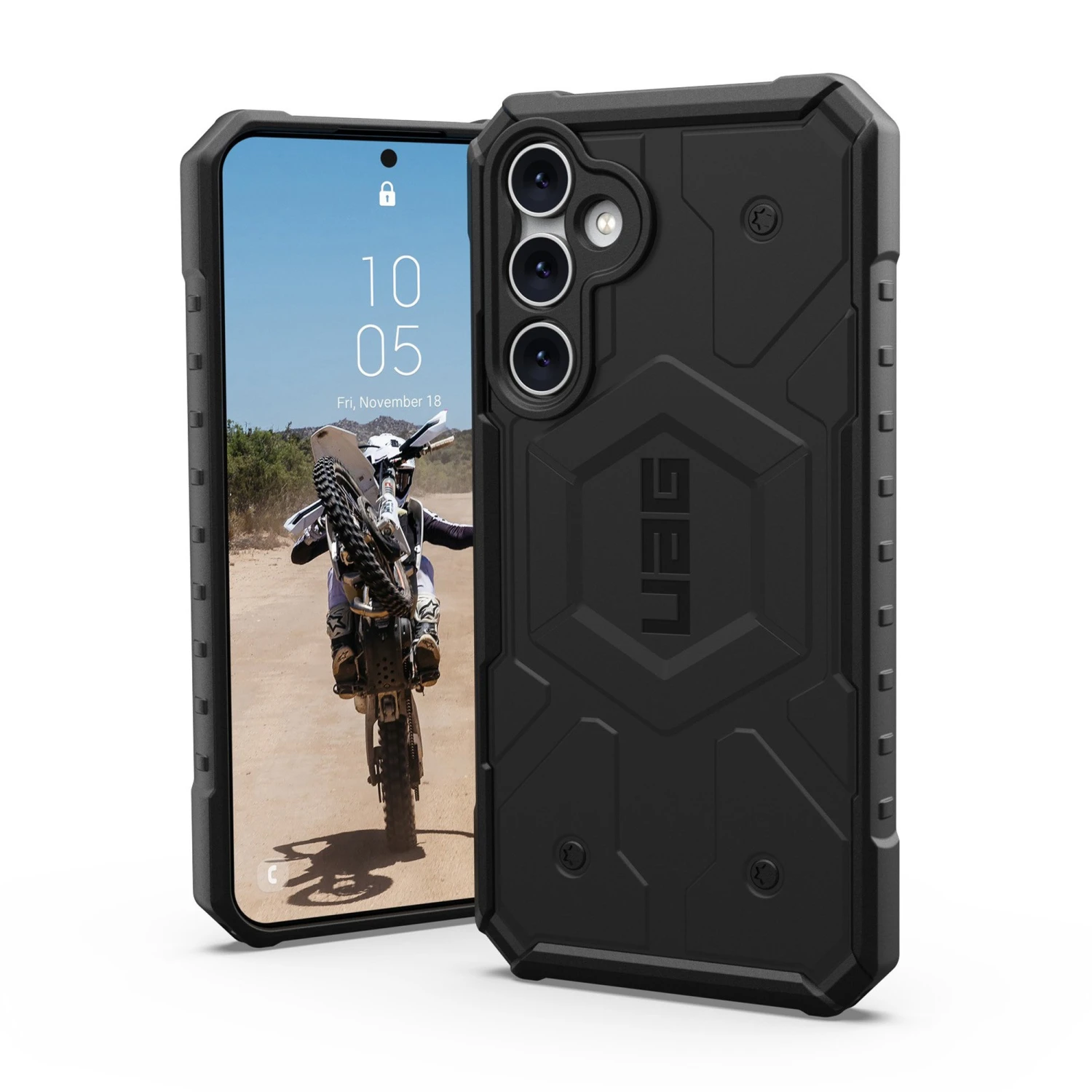 The UAG Pathfinder case series features an ultra-lightweight armor shell, and an impact-resistant soft core that provides increased drop and shock protection. The enhanced perimeter raised screen surround shields the display from accidental drops and impacts, and corner protection comes courtesy of TPU bumpers. A low profile perimeter edge with tactile grip offers better handling while on the go.